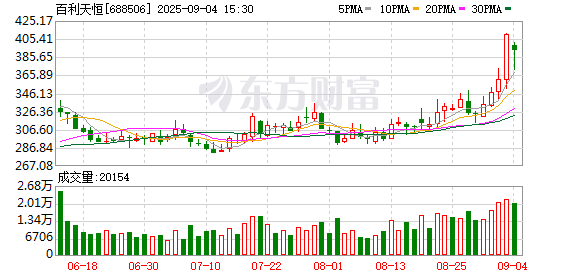 近期,百利天恒(688506.SH,股价392.5元,市值1573.93亿元)创下股价新高。